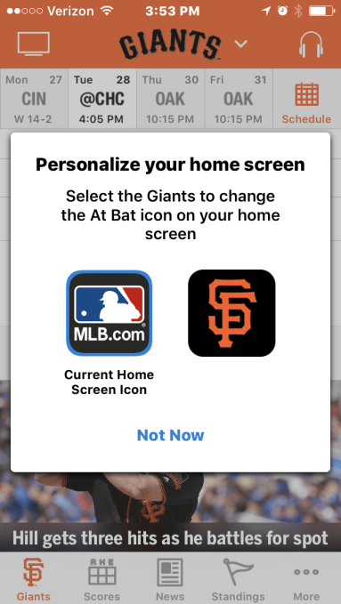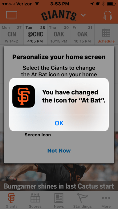 Starting today, that personalization will extend outside of the app for the first time, with the added ability to change the standard icon to one for your favorite team.