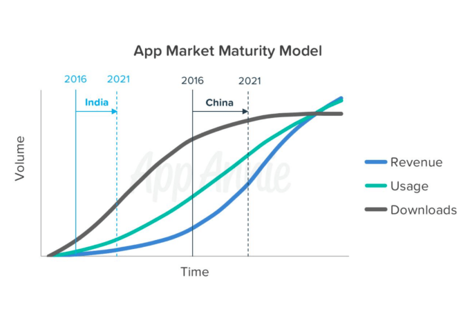 Despite India’s growth, consumer spend will be lower in the region because of a variety of factors, including more limited purchasing power and a culture that focuses more on saving versus spending on games and entertainment, App Annie says. It suggests that app developers targeting India consider other revenue models, like advertising.