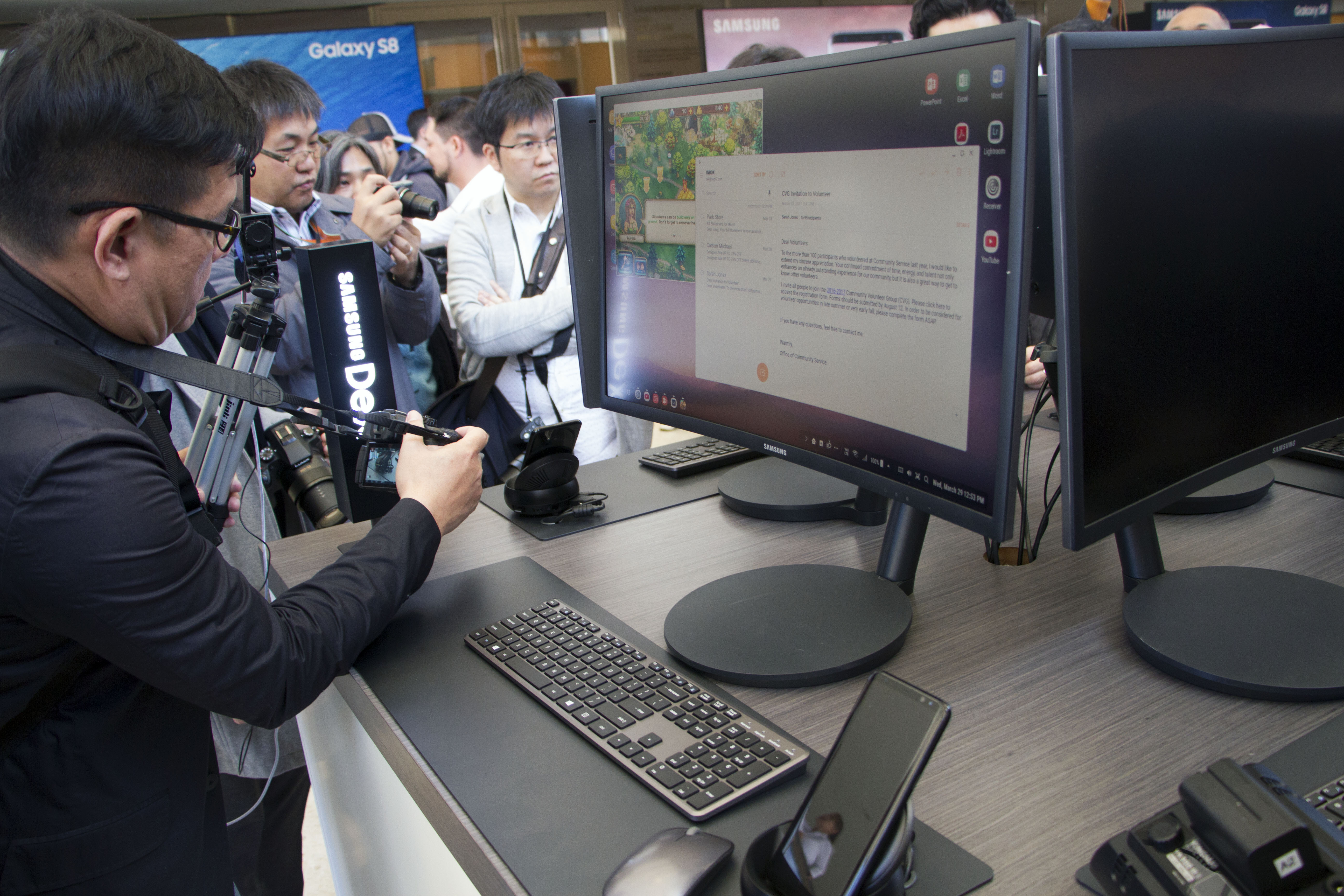 The system turns the Android experience into a full desktop (albeit with the limited processing power contained therein) and features enterprise support from the likes of Citrix, VMware and Amazon. It’s a pretty limited case use, let’s be honest. Samsung’s got work stations at offices in mind here, so employees can just pop their phone and go to work. Though I’ve got to wonder how many road warriors as it were are running around with smartphones and no laptops.