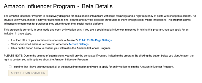 Social media influencers – like Instagram stars or YouTube celebs – often promote products they like, either as part of a brand relationship or as means of generating income through affiliate sales. Now, Amazon is looking to get in on this action as well. The company has quietly launched the “Amazon Influencer Program,” which is currently in beta testing as of a couple of days ago. Similar to the Amazon Affiliate program, the new program will offer influencers commission on products sold, but is not open to the public.