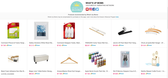 For example, this popular YouTube channel,What’s Up Moms, aimed at moms mentions their new Amazon shop, which has the URL format: amazon.com/shop/username.