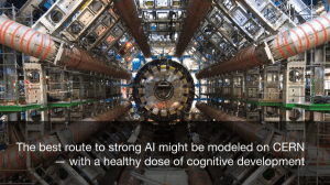 CERN is a vast interdisciplinary, multi-country consortium to solve particular scientific problems, maybe we need the same thing for AI. Most of the efforts in AI right now are individual companies or small labs working on small problems like how to sell more advertising… what if we brought people together to try this moonshot of doing better science, and what if we brought not just machine learning experts, and engineers who can make faster hardware, but researchers who look at cognitive development. I think we could make some progress. Gary Marcus
