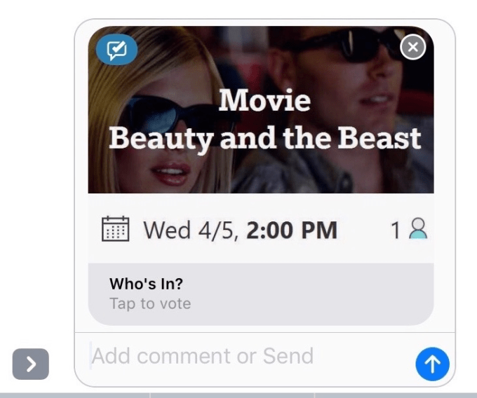 Now the company is giving social another shot with a new iMessage app called “Who’s In,” aimed at helping friends plan events and other outings, like movie dates, dinners out, visits to nearby attractions, and more.