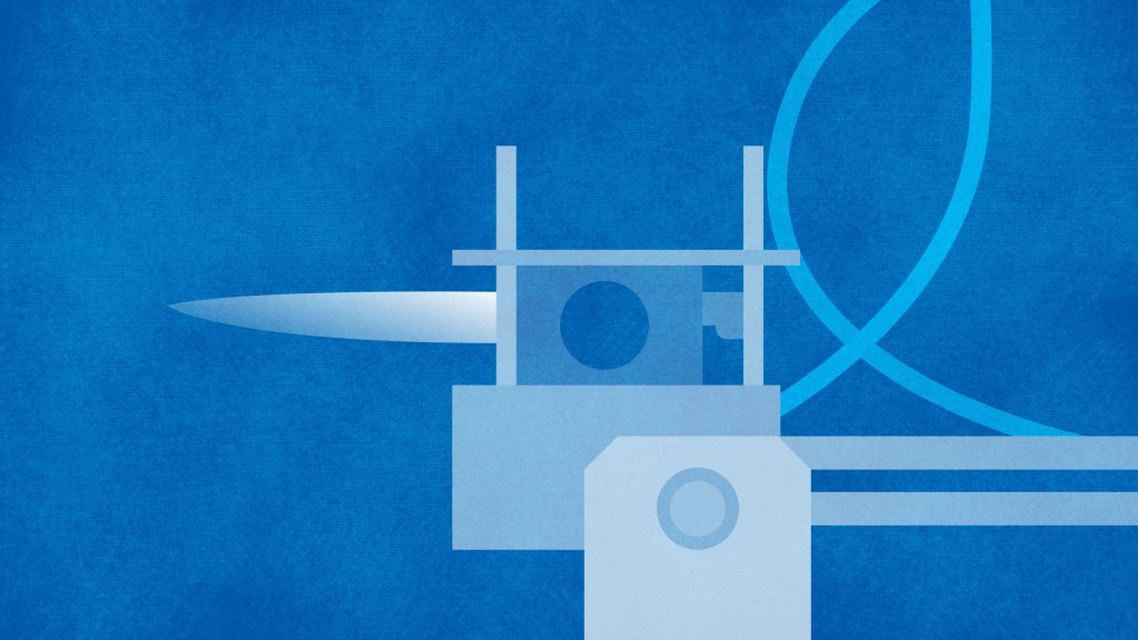 The stabbing machine — that’s what they call it; one senses an underdeveloped creative drive — is ostensibly to be used by forensic investigators who need to know what kind of knife was used in a crime. Various types of knives make various types of cuts, as you might expect, and the shapes of holes left in clothes can indicate whether the weapon was serrated, dull, curved and so on.