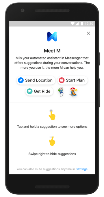 And if you really hate M, you can use the Messenger settings to mute it entirely or turn off certain kinds of recommendations. Even though it’s only an AI, not a human, some people might be a bit freaked out by Facebook scanning the content of their messages to provide these suggestions.
