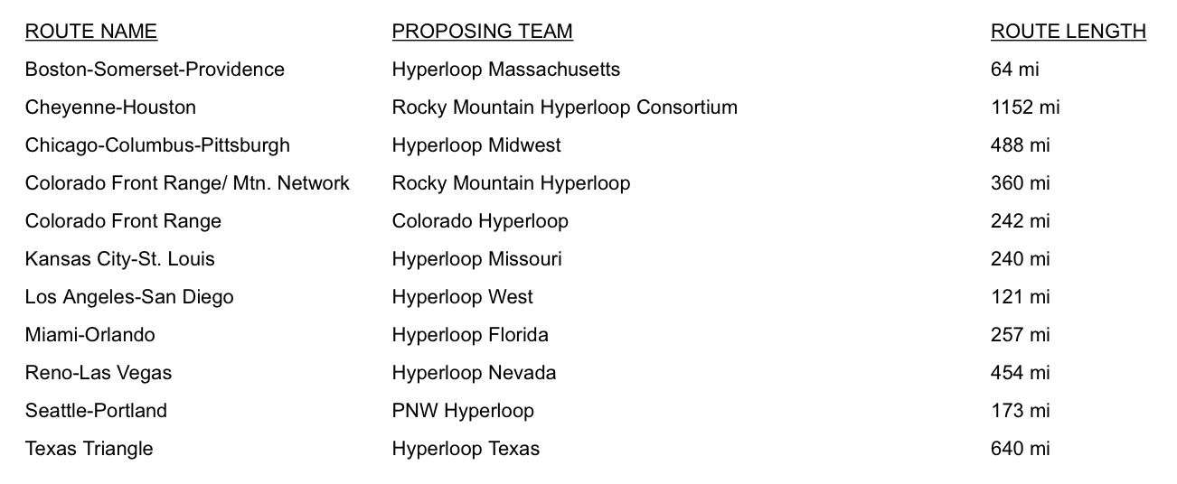 Hyperloop One is in Washington on Wednesday, presenting to policy makers and others in the nation’s capital details regarding its progress, and revealing 11 teams from the U.S. presenting proposed routes across 35 cities. The 11 U.S. teams will join the group of 24 other proposals from around the world, competing to become one of 12 total finalists, of which Hyperloop One will eventually choose three to work with more closely to bring the projects to fruition.