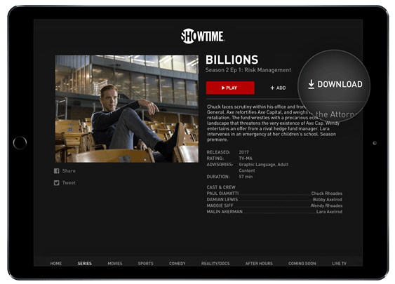 The addition also puts Showtime ahead of rival premium network HBO, which today does not offer downloads on either the HBO GO or HBO NOW application.