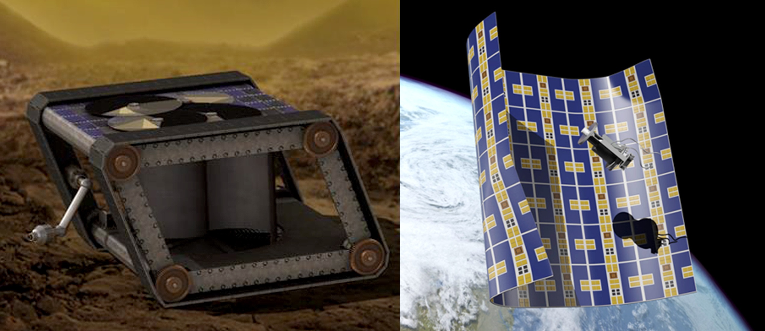 Brane Craft is a project we actually saw last year as a Phase I. This ultra-thin (mem-brane) spacecraft would be deployed by the dozen and each piece would wrap itself around orbital debris and drag it down to burn up in re-entry. Phase II has the team looking at lab tests of actual thin-film electronics, mechanisms and power solutions.