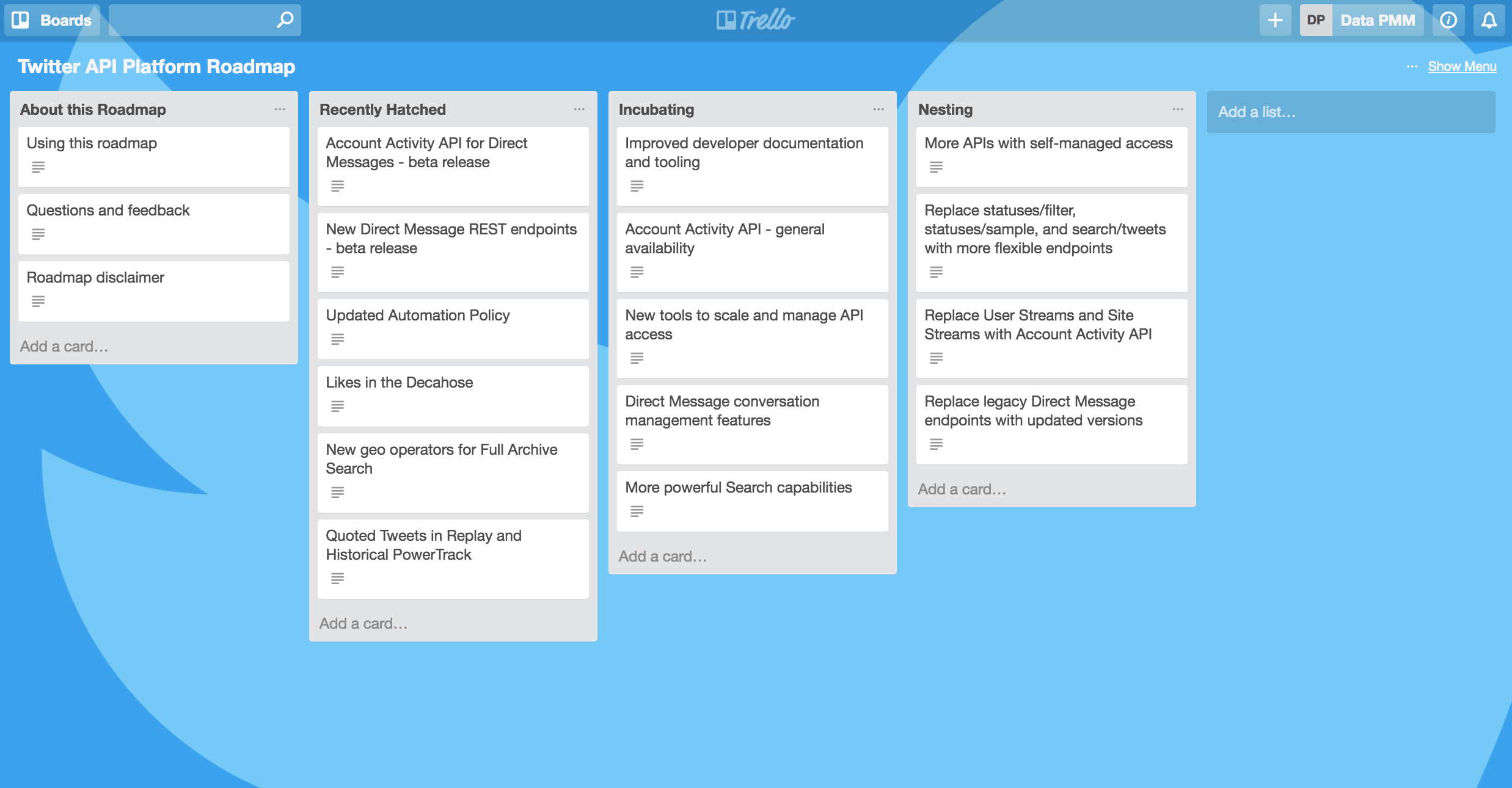 Most importantly, perhaps, Twitter for the first time has published its API platform roadmap through early 2018. This details what is in the works, when things are planned, and what’s in store for the future.