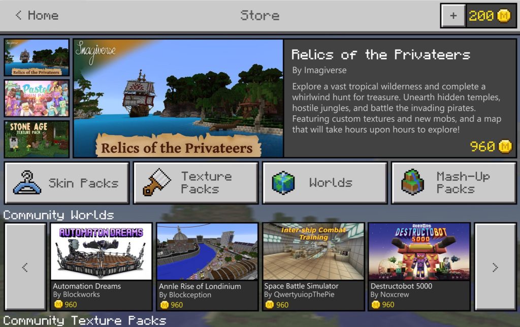 To buy in Minecraft Marketplace, users will employ Minecraft Coins, which will be on offer in-app in exchange for real money. The team is looking at ways to make the content users buy available across devices, so that when they buy on Windows 10 it’ll be available on mobile and vice versa – this will happen via an Xbox Live account, which is probably a good way for Microsoft to convert some Minecraft fans to users of its other services.