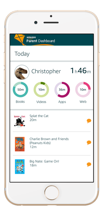 Of course, the idea to offer a parental dashboard like FreeTime is now doing is not something unique to Amazon – many kids’ app makers have included the technology into their own games and apps, and it’s a standard feature in third-party internet control software, too.