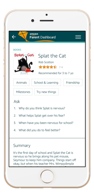 Amazon FreeTime, the subscription service offering kid-friendly books, videos, apps and games, is today rolling out a feature called Discussion Cards that will help parents better understand the content their child is viewing, reading or playing. The feature will be a part of a new Parent Dashboard that will also include activity reports and other insights into how the child has been using their device.
