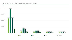 New York meanwhile had two $50M rounds from Namely’s Series D and Collibra’s Series C, but the majority of rounds came from Seed through Series B startup, which bodes well for the city’s continued momentum in the early stage ecosystem. Given the number of mature companies who will likely raise in 2017 as well, New York will likely regain control over Massachusetts in the next quarter or two to finish the year in second place behind California.