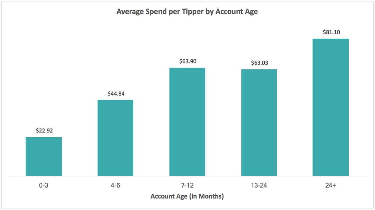 One pleasantly surprising statistic newly reported is that longtime stream viewers tip considerably more than new ones. Two-year-old accounts tipped more than $80 total per year on average, while brand new accounts tipped around $23. The numbers smoothly increase between those extremes, implying this is something people are adopting as a regular hobby, just like anything else, and spending money accordingly.
