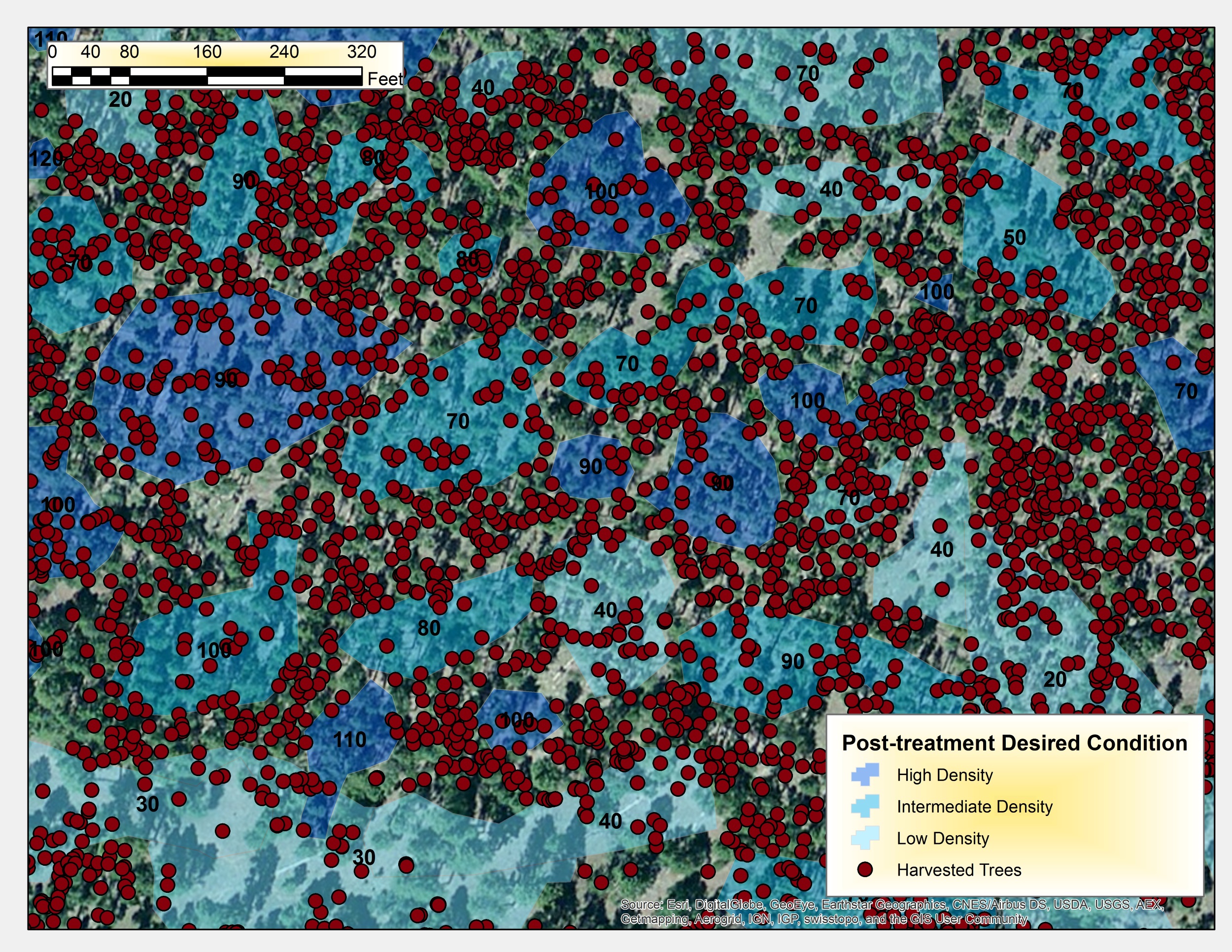 Another has an expert marking up a map with “prescriptions” for each area: what types of trees to cut, what to leave, etc. But not only does this lack the detail of the previous approach, but the loggers who are to cut the trees will move more slowly as they rely on their discretion to determine what fits the prescription’s bill, or argue over which zone they’re in.