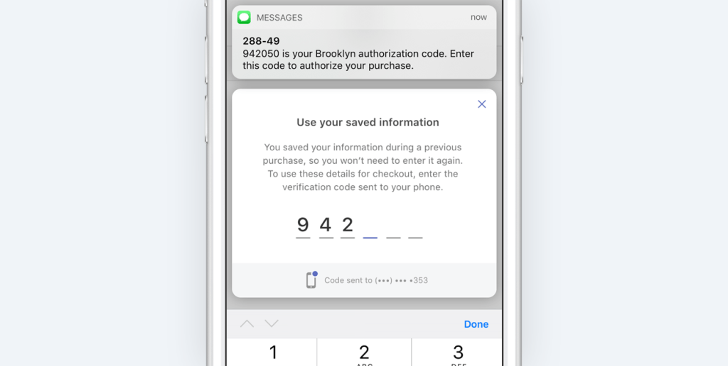 The Shopify Pay checkout process also offers security while reducing complexity; after you opt-in during an initial checkout, which users will see the first time they make a purchase on a Shopify store, you’ll receive a 6-digit verification code when subsequent Shopify stores recognize your email address. This comes in via SMS, like a second factor authentication code might, and you then just type that code into the field that pops up in order to complete the transaction.