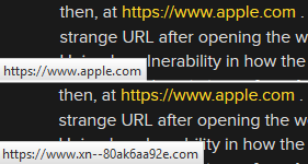 In fact, as you find out later in the paragraph or if you change the settings in your browser, the letters in apple.com are actually created by the punycode xn--80ak6aa92e.