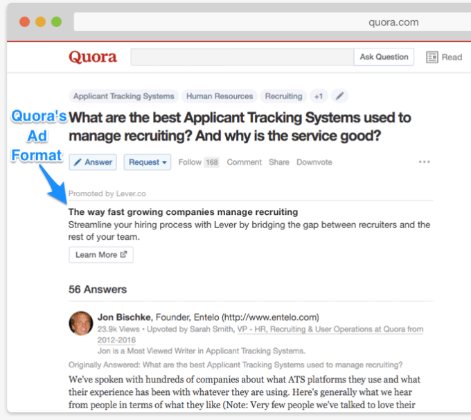 “The ads product is actually going pretty well,” says co-founder and CEO Adam D’Angelo. Quora’s ads show a business’ name and description beneath a related question people are answering. The ad format is still in closed beta but D’Angelo says “so far the results are pretty promising, and that was something that was important to the investors in this round.”