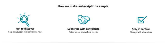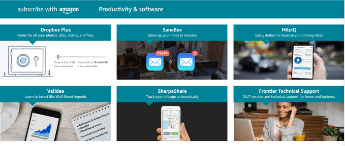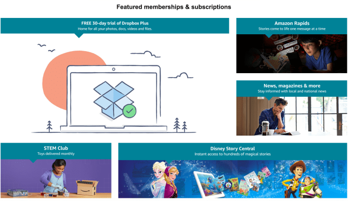 Many of the digital subscriptions available on the marketplace were things Amazon was already selling — like news and magazine subscriptions, or access to its kids’ reading app Amazon Rapids or its toy-of-the-month club, STEM Club, for example. But the new portal for Subscribe with Amazon aggregates and organizes all the different types of subscriptions under one roof.