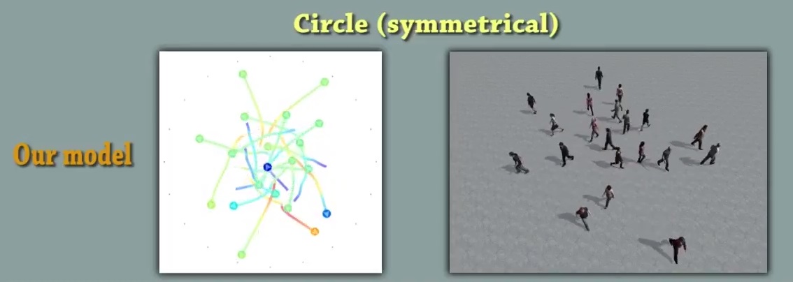 The results are really quite good, with the little crowds navigating one another deftly — but never too deftly. When two streams of people cross, they don’t find a perfect function for how to do so without modifying their speeds or looking around. There’s a little negotiation and some slowdown and that’s what you see with this vision-based approach.