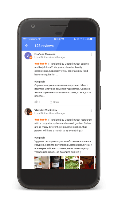 Google announced today it’s making its business reviews easier to access and read when you’re traveling by performing automatic translation. The company says it will now translate the user reviews that appear in Google Search results and Google Maps into the language you have set on your device, so you can read them in your own language. This allows you to get more information about the business in question, restaurant, bar, shop, attraction or other point of interest you may be planning to visit, by hearing what others had to say about it.