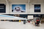 We got a tour of the facilities, which occupies a hangar on a small airfield peppered with aeroflight companies. The main visual attraction inside is the full-scale mock-up of Boom’s XB-1 demonstration prototype, which will be a human-piloted, smaller version of the commercial passenger jet it hopes to build, fly and sell to airlines around the world in the future.