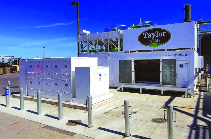 The Concentric Power system installed at Taylor is a “cogen plant,” that’s about 40 x 60 feet. It uses natural gas and waste heat to provide low-temperature refrigeration for Taylor’s vegetables. Installing such a system requires tie-ins to a facility’s pipes and electrical systems. It’s not quite like plugging in a new refrigerator at home.