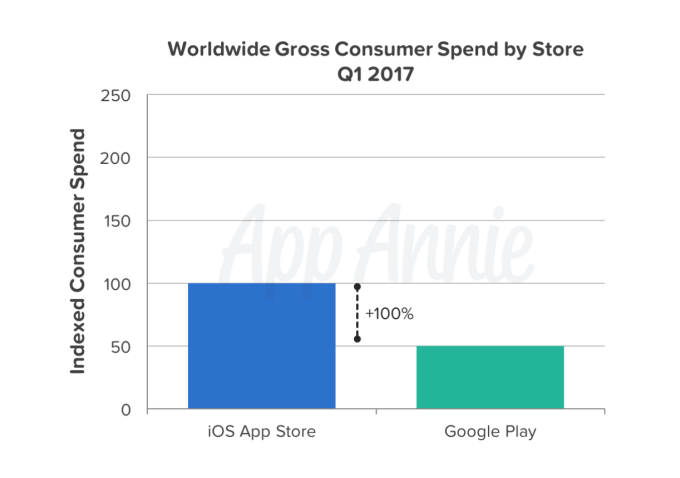 Despite iOS’s lead, Google Play consumer spend did pick up steam in Q1 2017, having shown strong growth of 40 percent year-over-year.
