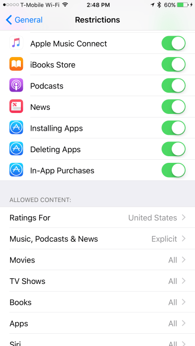 Under “Settings” –> “General” –> “Restrictions,” you can block the kids from using Apple’s built-in apps, block app downloads, and can block apps based on their current rating. (Tumblr is rated 17+, for example). However, there is not a way to force something like a Safe Search toggle switch to remain on.