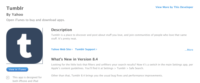 Apple has not responded to requests for comment about the matter. Tumblr declined to comment.