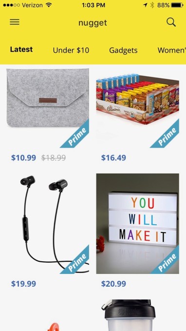 Nugget is also similar in other ways to Canopy, a shopping app that curates Amazon’s best products. However, Canopy’s suggestions aren’t necessarily low-cost items. Amazon is also now offering its own curated store through a site feature called Interesting Finds.