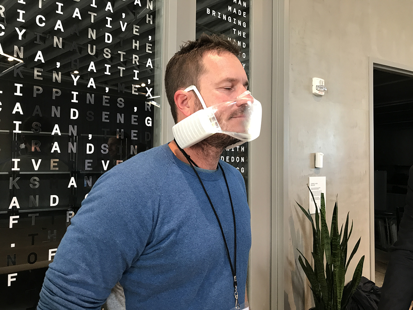 Oddly, O2O2 didn’t allow attendees to try on the mask (claiming that it was only formulated for the creators’ facial structures for now). However, O2O2 is promising four different facial molds at launch with customizeable modules (the unit you see above is an engineering prototype) that include the sensors, filters and batteries.