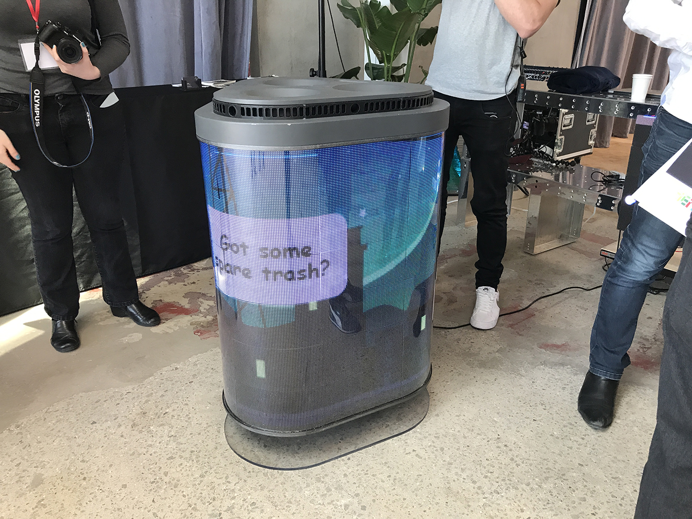 Perhaps the most niche of presentations came from Sencity, with the TetraBIN. Some of Sencity’s design work has been used at embassies and malls in Australia – at heart, they are a design firm. Now they’re looking to tackle cleanliness in city streets by making trash cans interactive and visually appealing.