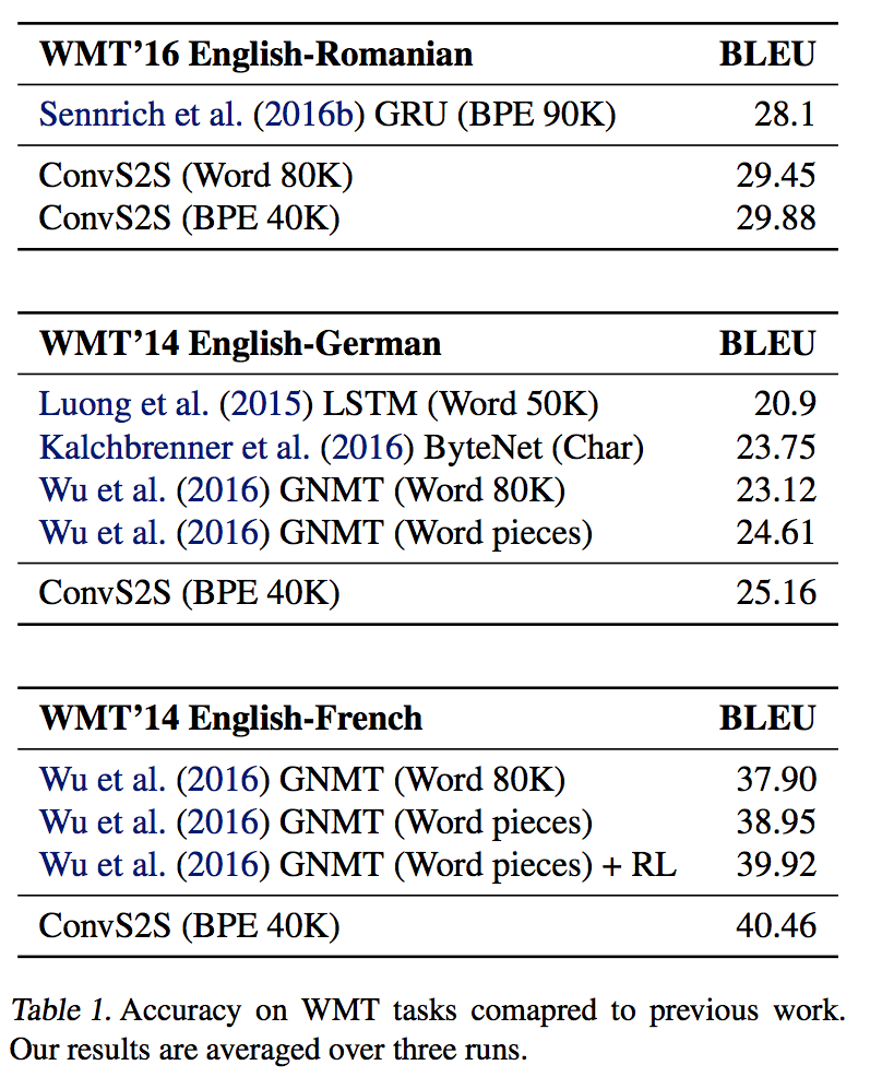 David Grangier and Michael Auli, two of the authors on the paper, explained to me that these tasks weren’t selected because they are the hardest languages to translate, but because they are the most competitive and others have already achieved impressive BLEU scores using alternative methods.