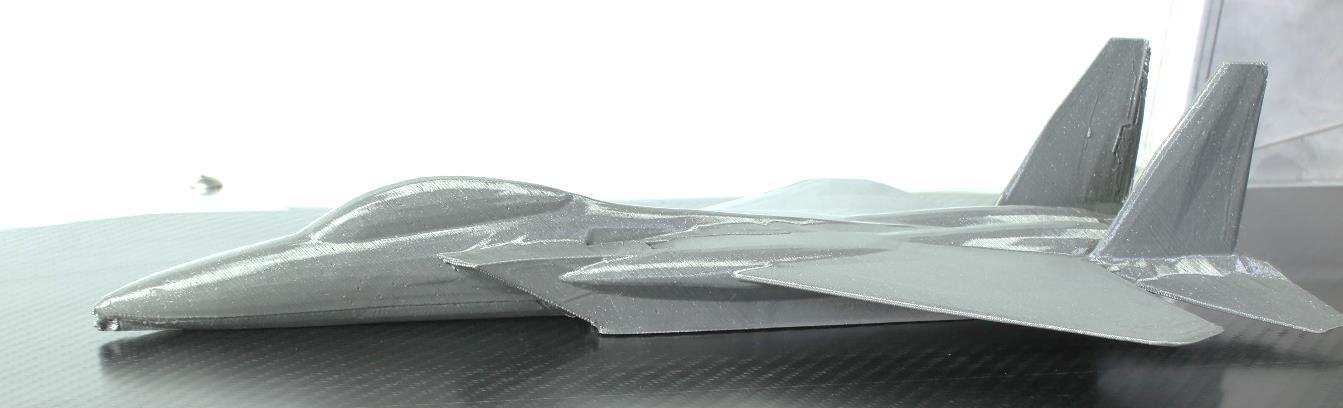 You can read a few more specs here but basically this turns 3D printing on its head (side?) and lets you do some interesting things. For example, this jet would require lots of support material to print the nose. With this technique as long as you start the print touching the belt you can easily print objects with overhangs and indentations.