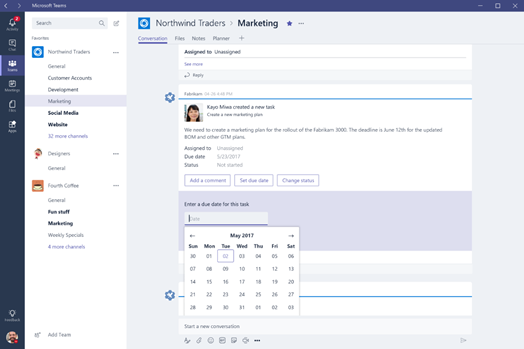 The company’s goal with Teams is to offer its own competitor to Slack, but one that’s designed to work with Microsoft’s other applications – like Excel, Word, PowerPoint, OneNote, SharePoint and Power BI – as well as some 150 integrations with third-party services often used in a corporate environment, like those from Asana, Hootsuite, Zendesk, and more.