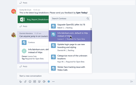 During the demo at Build, Microsoft’s focus was on showing how all these apps – plus Cortana – could work together. For example, after one meeting demo, a mobile user returned to her laptop to find an Action Item from Cortana, which pulled up a meeting summary sent to her in Outlook. The summary included attendee list, video links, the tabs used and the bot interactions from Teams, along with the user’s Action Item they could mark as complete in the email itself.