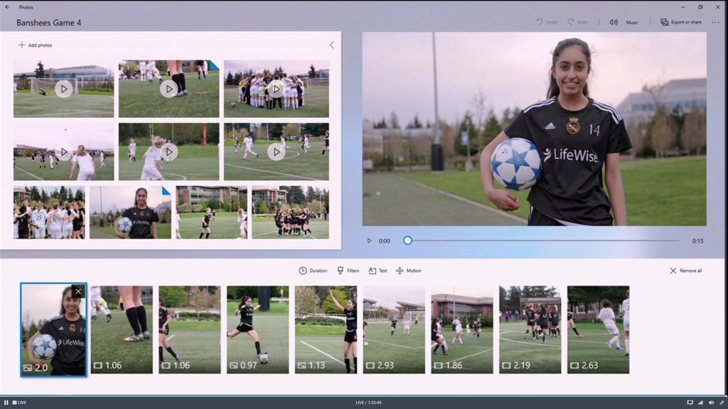 In the demo, those videos look great, but in some ways, the fact that Microsoft has seemingly made it very easy to edit and customize these machine-built videos may just be the application’s biggest asset. If you want to change the font of your titles or make a clip a little bit longer, that’s easy to do. But that’s nothing special. Every other video app does that, too, and even Google Photos does some of this with its automatically created videos.