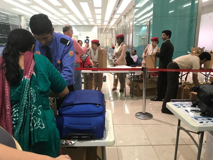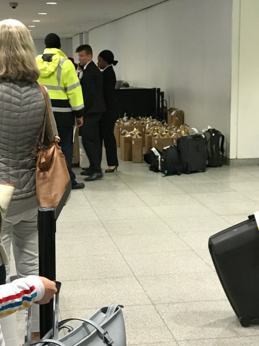 On a serious note, both airline and airport staff did a commendable job of managing what is clearly a very challenging situation for both them and their customers. There’s no formal process for checking for and removing electronics — which is far harder to carry out than baggage scanning — and it looks like they are learning as they go.