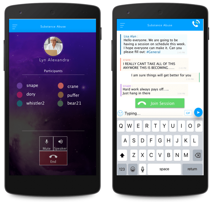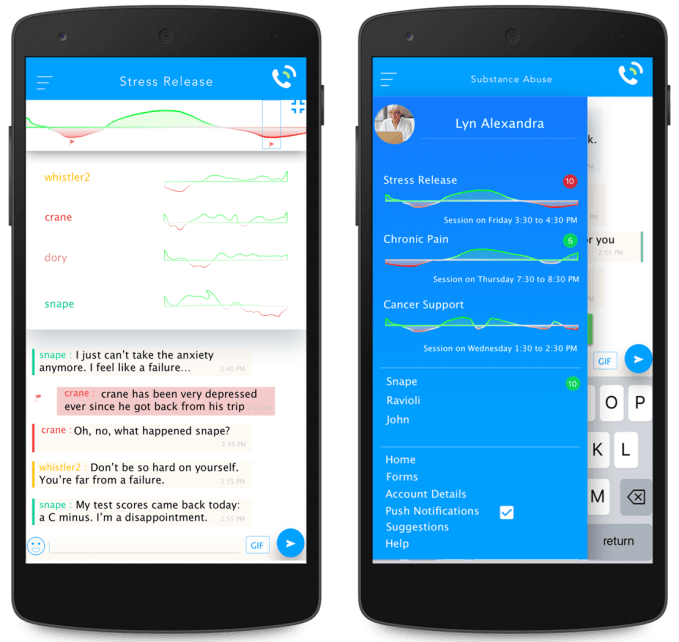 When users sign up, they select the mental health affliction they’re dealing with from a range including depression, grief, PTSD and substance abuse. Before being placed into a support group of around a dozen people with a similar condition, they’re more deeply assessed by the group’s professional therapist moderator in a one-on-one chat and given diagnostic forms to complete.