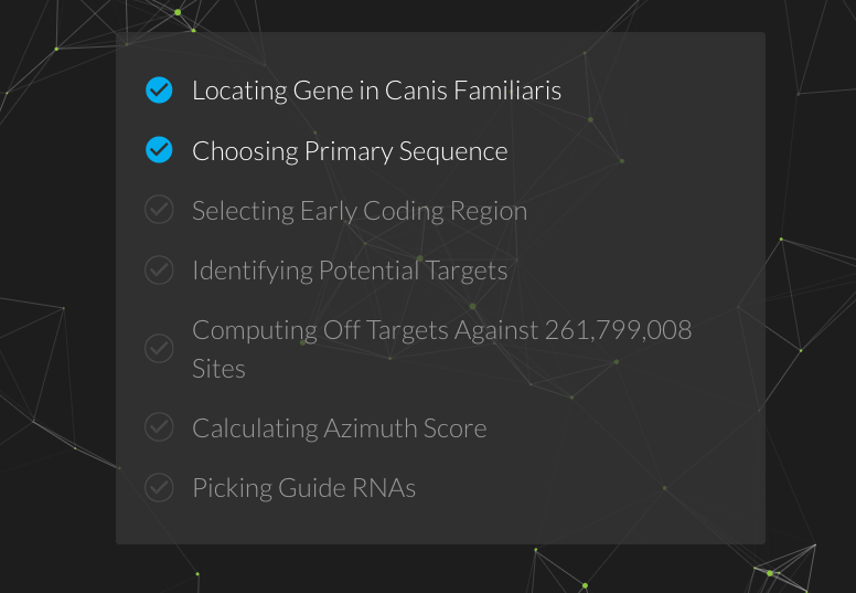 Once you specify the gene you’re looking to disable (no adding genes yet — that’s more difficult and more ethically dubious), Synthego generates the “guide” RNA strand needed to take the CRISPR molecules to their targets. Or, if you already have the guide RNA, the platform can double check it for accuracy — and then you can order a few strands right there.