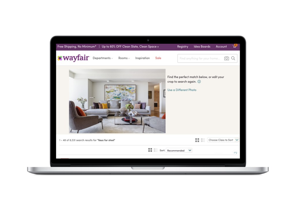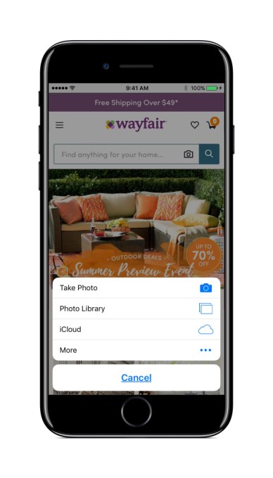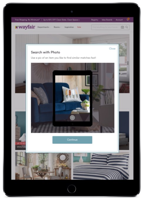 Using either a camera or their photo library on web and mobile, online shoppers can take a picture or upload a photo they’ve already saved to see if Wayfair has something similar.