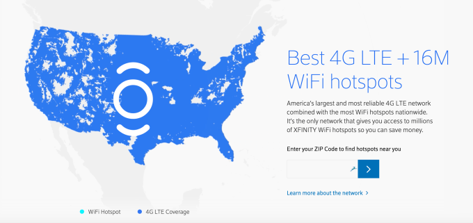 The service itself runs on top of Verizon’s network (disclosure: Verizon owns TechCrunch parent AOL), but also includes access to Comcast’s existing 16 million Wi-Fi hotspots. The idea is that Xfinity Mobile users will be automatically switched over to the hotspots when in range, saving them on their data usage and enjoying better connection speeds.