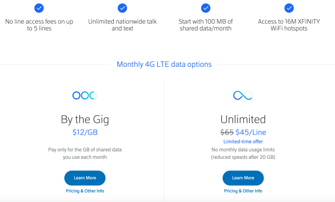 In April, cable company and internet service provider Comcast announced its new wireless business, Xfinity Mobile, which offers unlimited data plans to Comcast customers that can be as cheap as $45 per month, for those who also subscribe to Comcast’s high-end X1 packages. Today, that service is launching and is open for sign-ups, the company says.