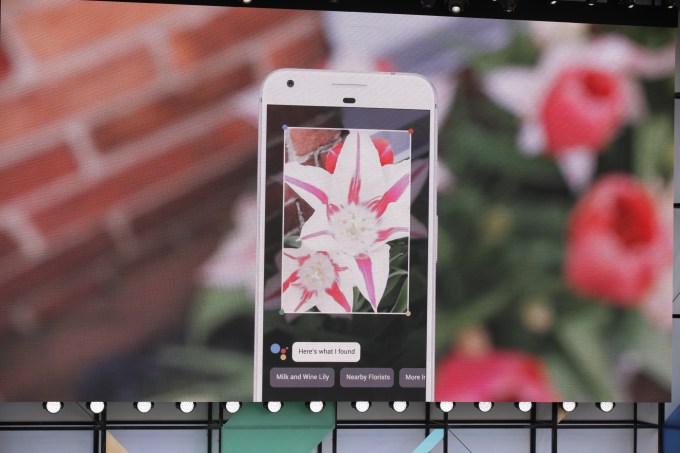 During a demo, Google showed off how you could point your camera at something and Lens tells you what it is — like, it could identify the flower you’re preparing to shoot.
