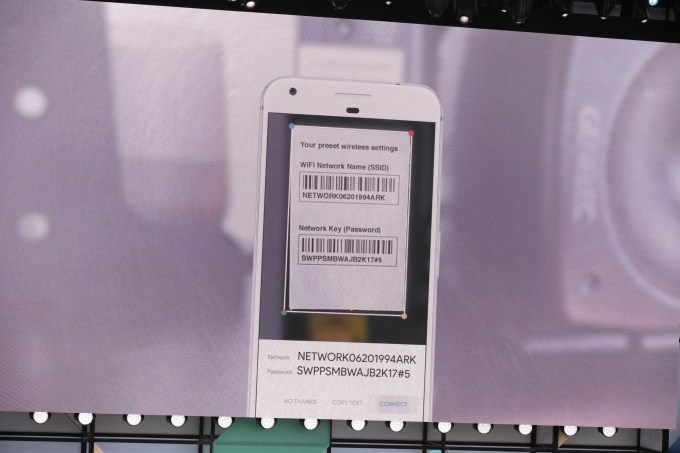 In another example, Pichai showed how Lens could do a common task — connecting you to a home’s Wi-Fi network by snapping a photo of the sticker on the router.
