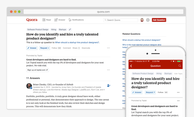 The question-and-answer site first launched ads last year in April 2016, but since then it’s only existed in closed beta to pre-approved advertising partners like Mulesoft and Shopify.