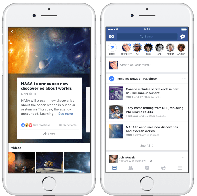 Facebook tells TechCrunch that the Trending sources carousel isn’t personalized to purposefully show you publishers you don’t follow or that might have a contrasting view point to what you typically click and share. But by swiping through to different news sources that you don’t follow, the company says it could show you different view points on the same topic.