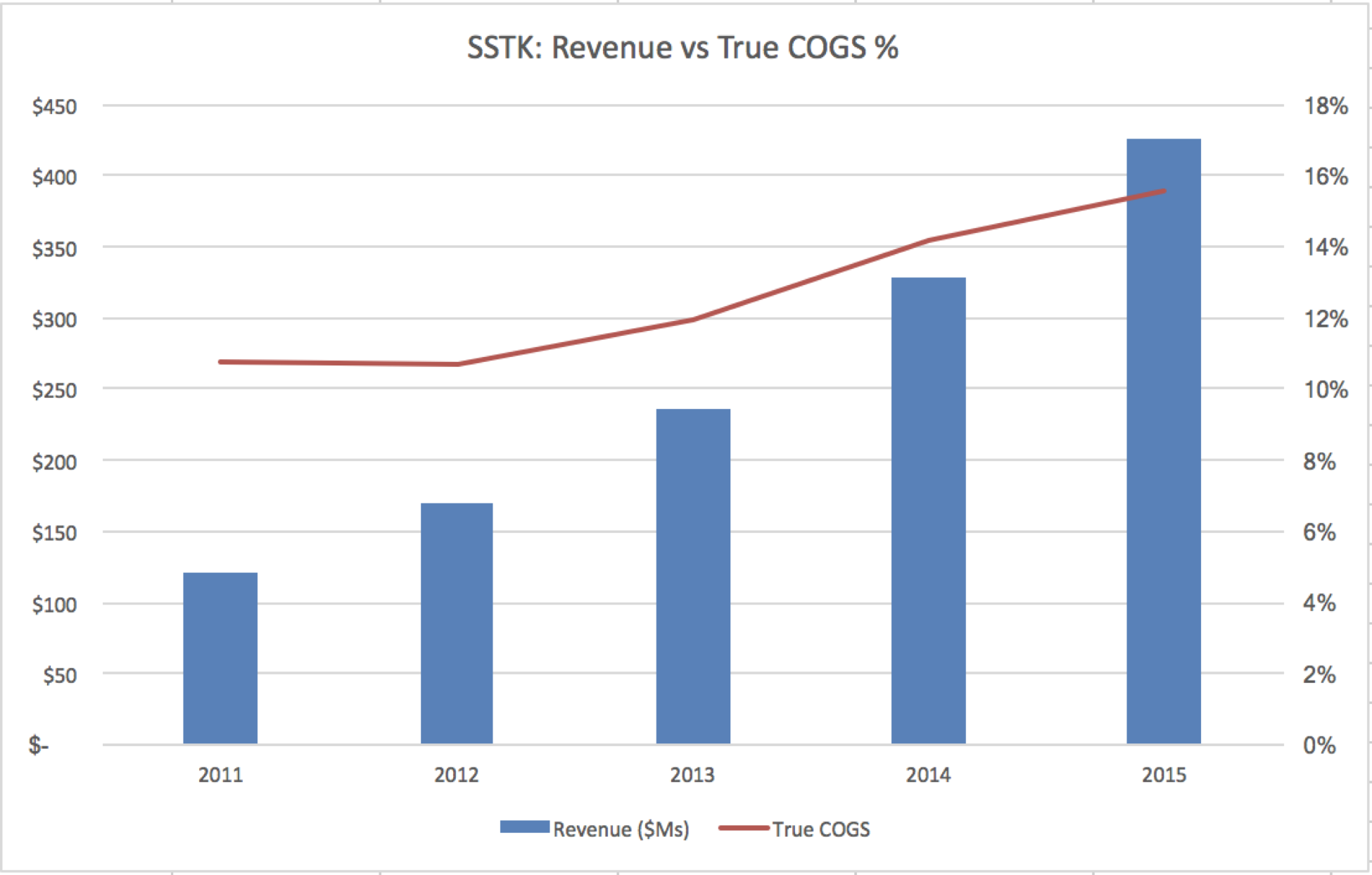 Surprisingly, rather than decreasing over time, these True COG costs appear to be increasing. Meaning that the same picture that used to take 10.5 percent of revenues to process now costs nearly 15 percent.