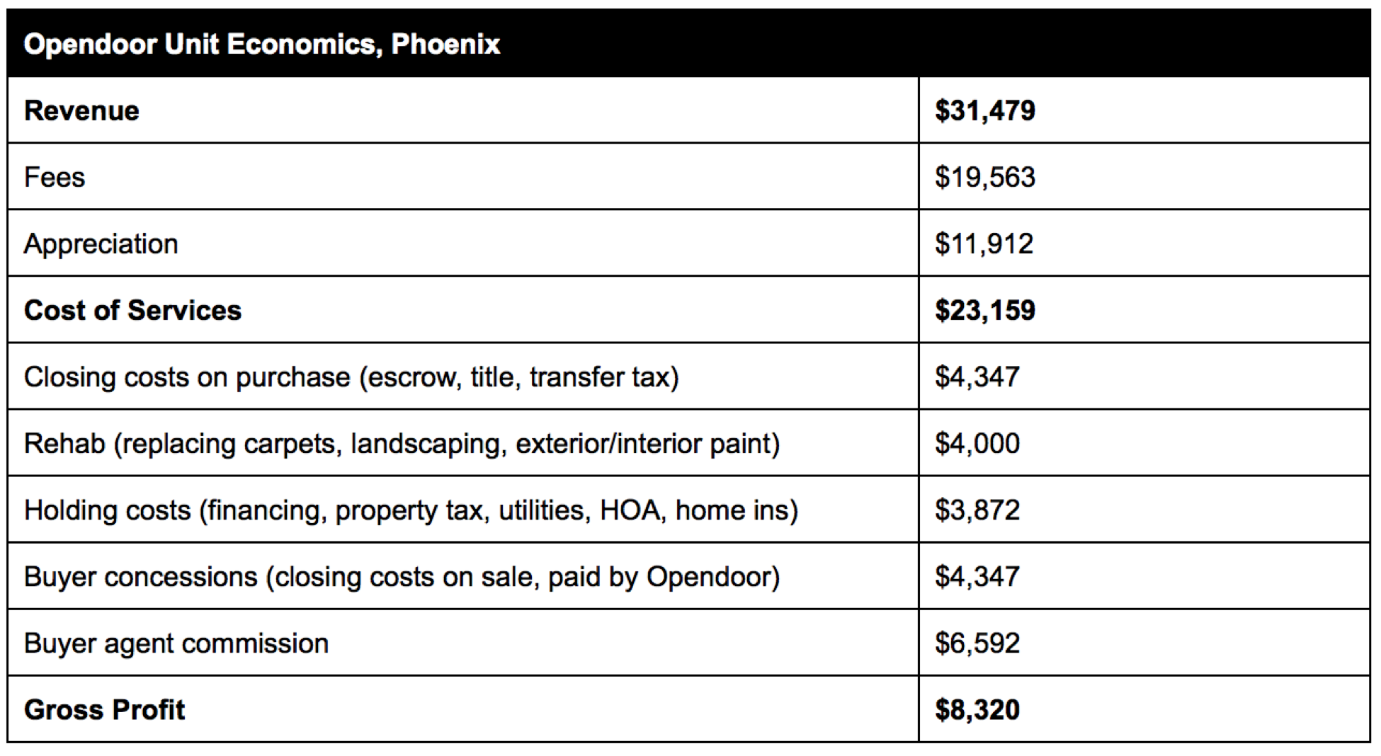 Case in point is the below estimation of Opendoor’s revenue and cost structure on an average $220,000 home (their sweet spot) with a 9 percent brokerage fee, a 50 percent premium to market rates: